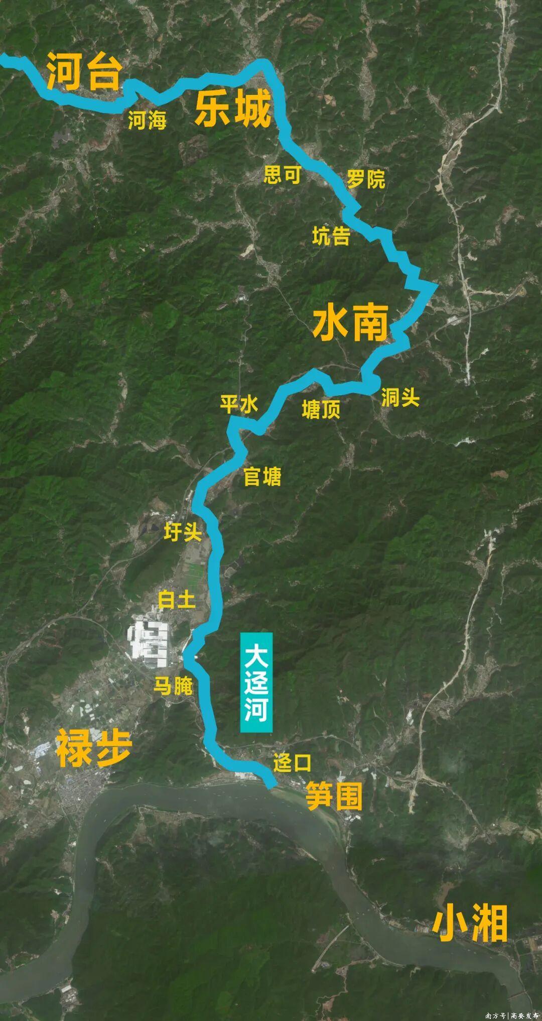 ▲ 大迳河沿岸镇村。邓达荣 制图