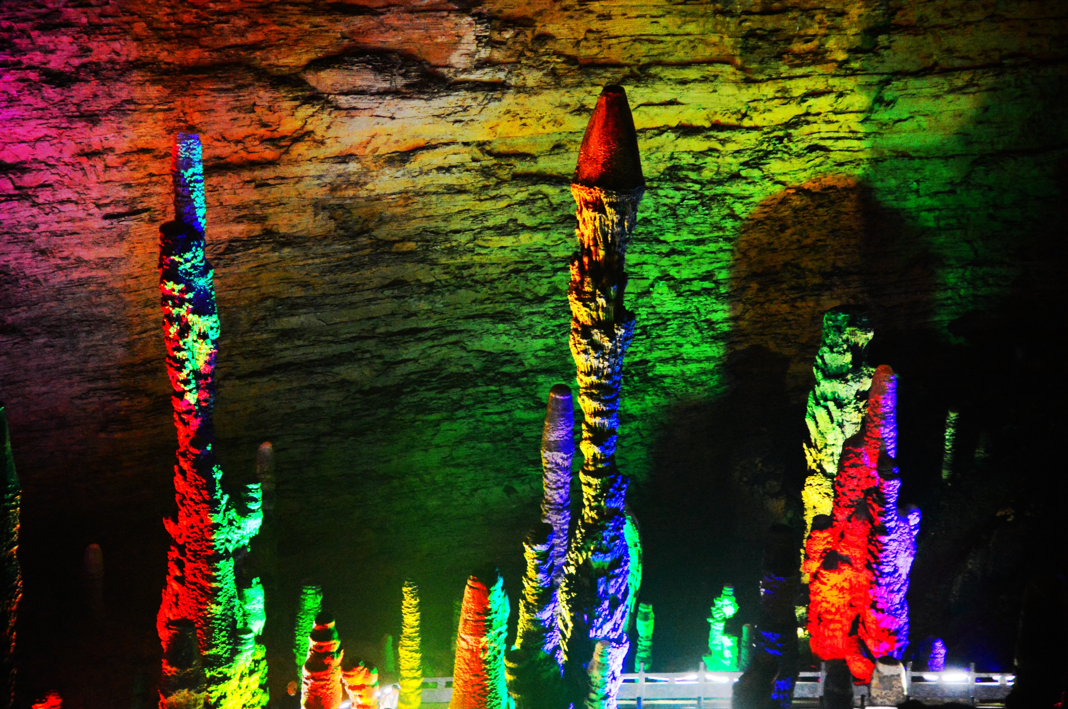 中午热的时候,去“天然空调”黄龙洞待着最合适。洞里常年保持16℃的温度,进洞得备上一件薄外套。跟着导游往里走,那些奇形怪状的钟乳石映入眼帘,有的像定海神针,有的像龙宫宝殿,五颜六色的灯光照着,真有点像置身神话世界。最有意思的是坐船游暗河,水面倒映着石笋,船工偶尔喊一嗓子,回声在洞里荡来荡去,既凉快又好玩。