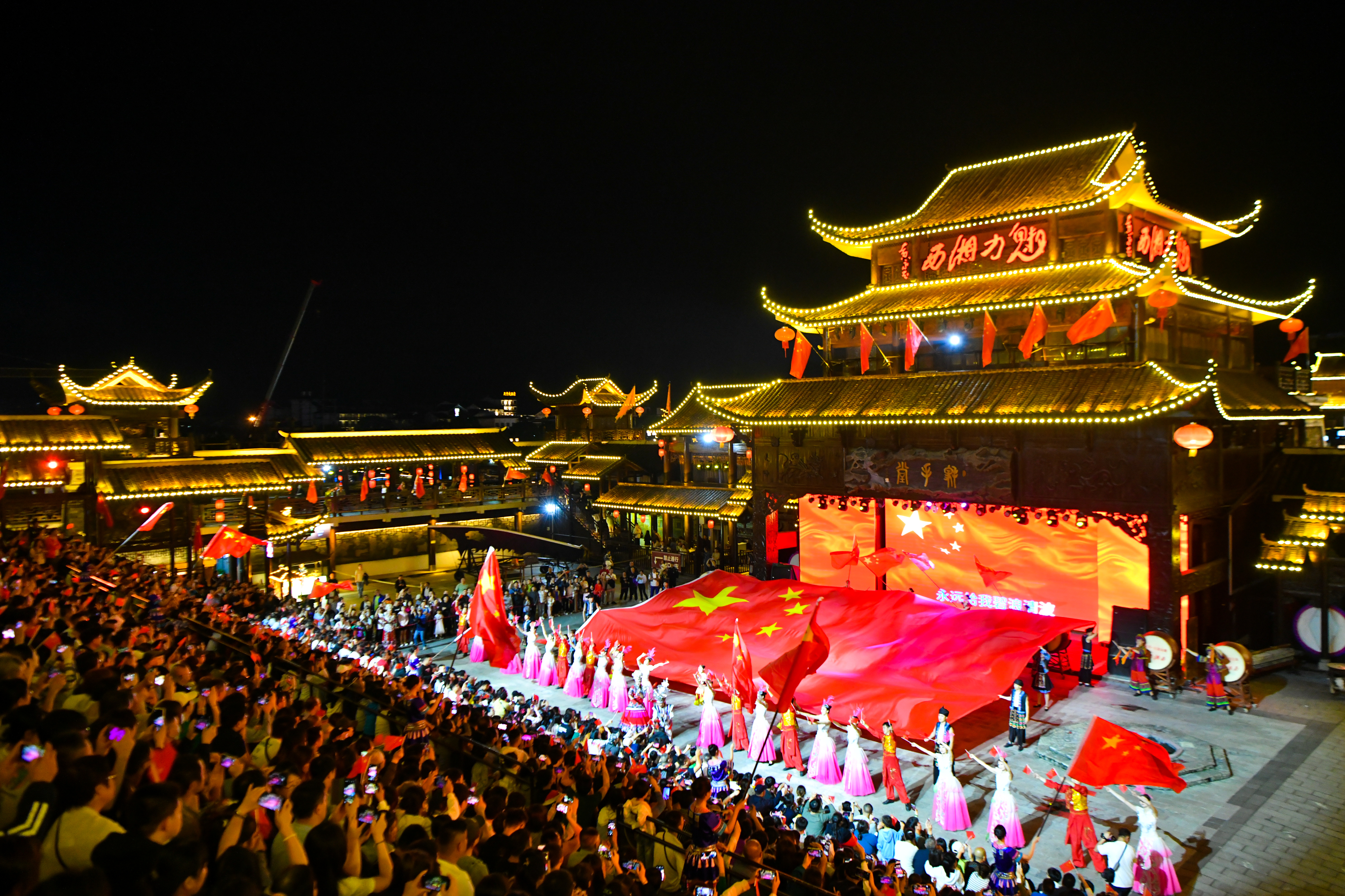 吃完晚饭,魅力湘西文化广场的夜景正灿烂。不用挤在人堆里,沿着河边慢慢逛,能看到卖猕猴桃干、葛根粉的小摊,还有老婆婆坐在那儿织西兰卡普布。累了就坐在河边的石阶上,看看对岸的灯光映在水里,听着远处传来的山歌,比在空调房里舒服多了。