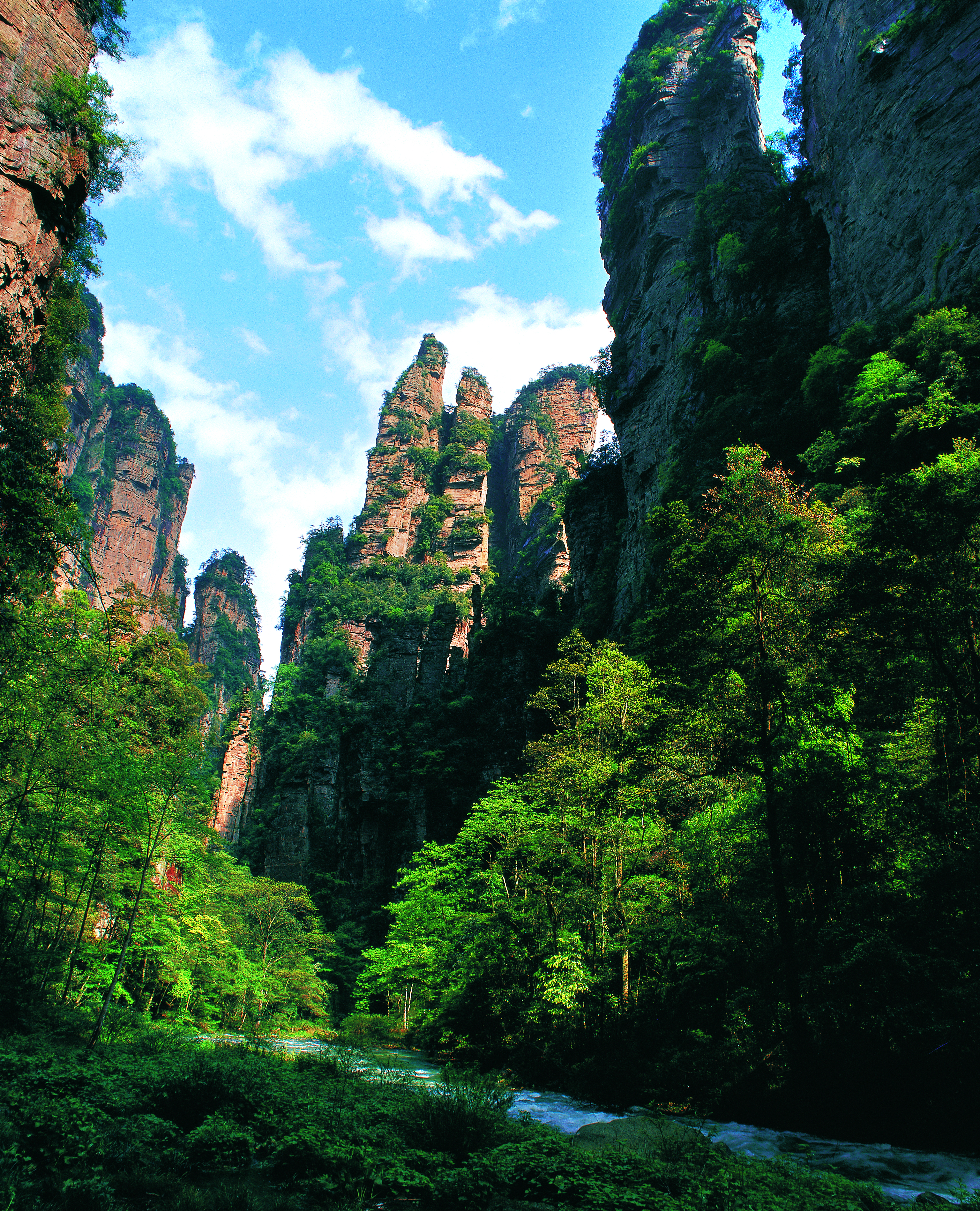 夏天想找个凉快地方散心,张家界国家森林公园再合适不过。这里七月平均气温仅23℃,比城市里低好几度,满山的树木像撑开的大伞,走到哪儿都有凉风拂面,特别舒服。