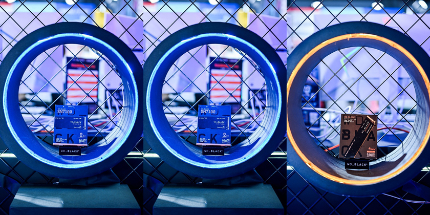 面向主流玩家,WD_BLACK SN7100 NVMe SSD同样表现不俗:高达7,250MB/s的顺序读取速度较前代提升约35%,最高4TB容量可容纳更多大作,DRAM-less架构也带来了更低能耗,适合游戏本用户无忧扩容。电竞硬核玩家则钟爱RGB散热片版本的WD_BLACK SN850X,高达7,300MB/s的顺序读取速度配合高效散热,时刻保持冷静运行,为下一场对局蓄势待发。
