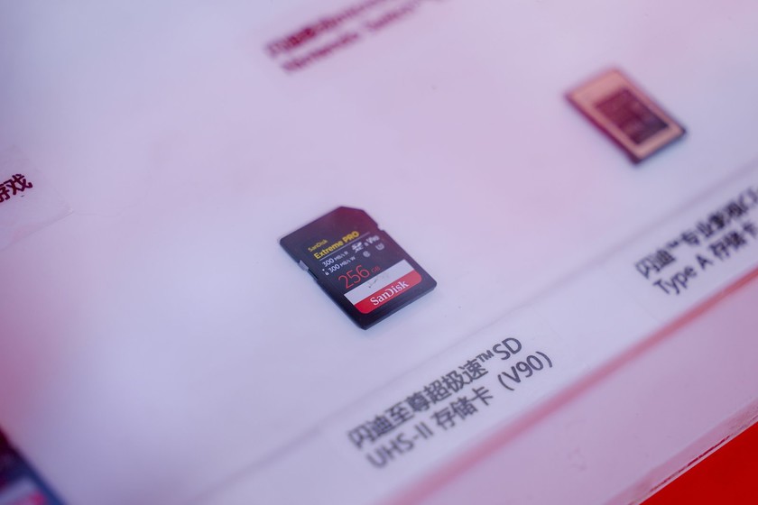 此次展出的闪迪至尊超极速SDXC UHS-II(V90)存储卡读写速度高达300MB/s,支持高质量RAW连拍与8K视频录制,防水防震,适用于户外拍摄等复杂场景,助力专业影像创作高效流畅。