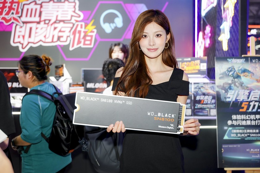 现在3A大作动辄百GB容量,加载速度慢一秒都可能影响战局!展会现场最吸睛的莫过于WD_BLACK SN8100 NVMe SSD——这款PCIe Gen 5.0旗舰固态顺序读写速度高达14,900MB/s和14,000MB/s,大场景加载几乎零等待,随机性能突破2,300K IOPS,多任务切换时帧率稳定。更值得一提的是,它相较上一代Gen 4.0旗舰产品能效提升了100%,笔记本玩家也无需担心续航缩水。